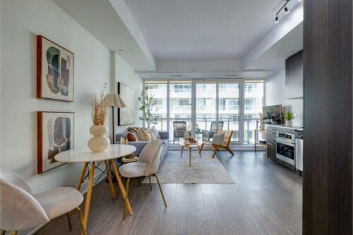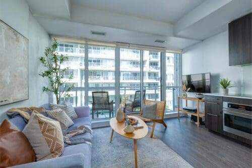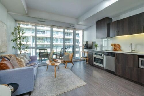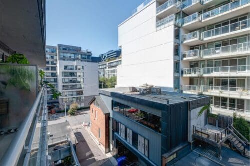 Experience the epitome of urban living in this stunning 11-storey boutique building, nestled at the vibrant intersection of Wellington and Portland in Central King West. This sought-after condo is situated in a dynamic neighbourhood, offering unparalleled access to TTC, renowned restaurants, lively nightclubs, and the much anticipated complex, The Well.Step inside to discover an open-concept 1-bedroom unit with modern finishes throughout. Enjoy the spacious living area that seamlessly flows into a large balcony perfect for outdoor relaxation and entertaining. With floor to ceiling windows this space has tons of natural light. This property offers both luxury and prime location, making it an excellent choice for a starter home or investment. Additional features include a convenient storage locker.